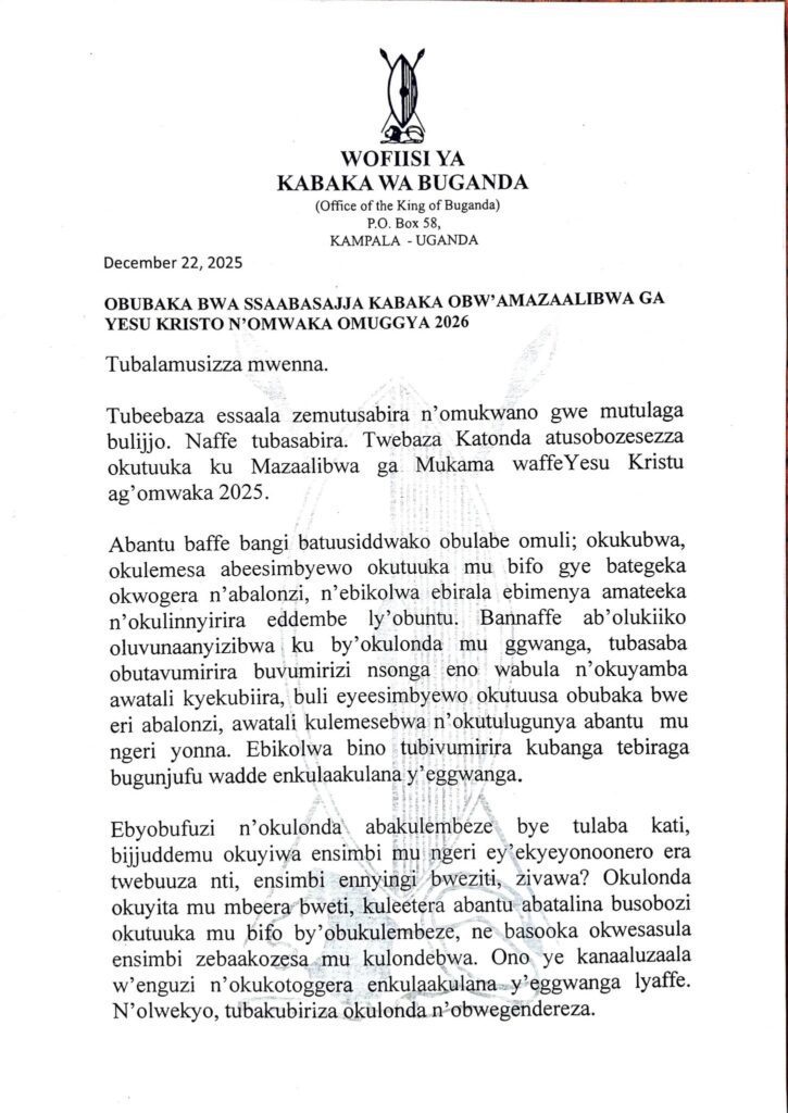 As Ugandans gear up for Christmas and the new year, His Majesty Kabaka Ronald Muwenda Mutebi II delivered a message that’s got everyone talking – starting with warm thanks but quickly turning serious on the country’s big issues.